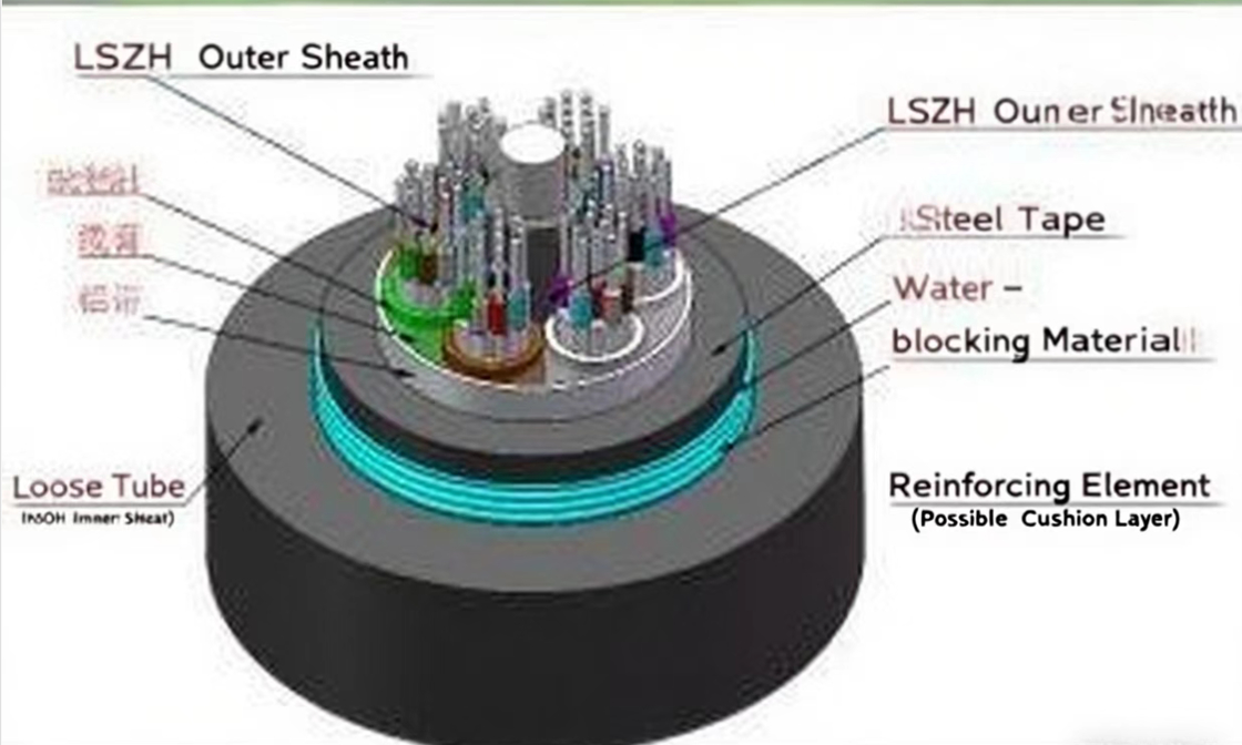 ⫸ Caratteristiche del prodotto: ① Progettazione ragionevole e controllo preciso della lunghezza rimanente e del metodo di cablaggio della fibra ottica nel tubo libero, rendendo il cavo ottico eccellenti prestazioni meccaniche e ambientali; ② La parte esterna del rinforzo e la parte interna del nucleo del cavo sono riempite con pasta per cavi resistente all'acqua, garantendo l'effetto a prova di umidità e resistente all'acqua del cavo ottico; ③ La struttura a doppio strato di confezione longitudinale a nastro metallico e guaina a doppio strato garantisce una forte resistenza alla trazione e alla pressione laterale, con la capacità di prevenire i danni dei roditori e una buona resistenza all'umidità; ④ La guaina è realizzata in materiale LSZH ignifugo, che presenta i vantaggi di un buon effetto ignifugo e di una bassa concentrazione di fumo durante la combustione. Può essere utilizzato in luoghi con requisiti di ritardante di fiamma, in particolare nelle reti di comunicazione del trasporto ferroviario.